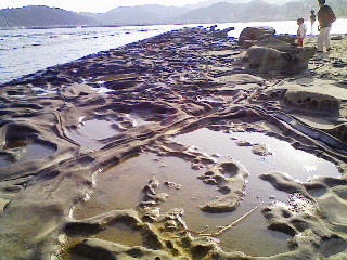 :画像:宮崎県・青島神社(小さな島が丸々神社の敷地)の裏手/青島に渡る途中の「鬼の洗濯岩」