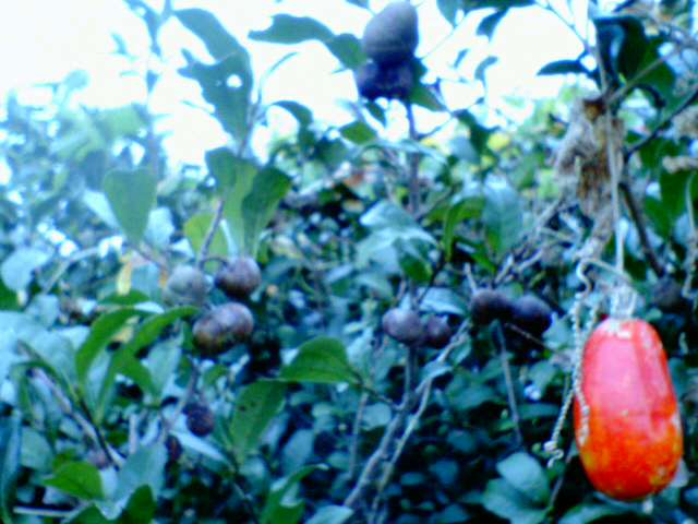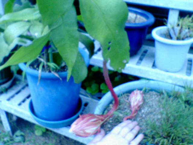 ユリのような質感の、ショッキングピンクの長い房花の中の実を食べた。