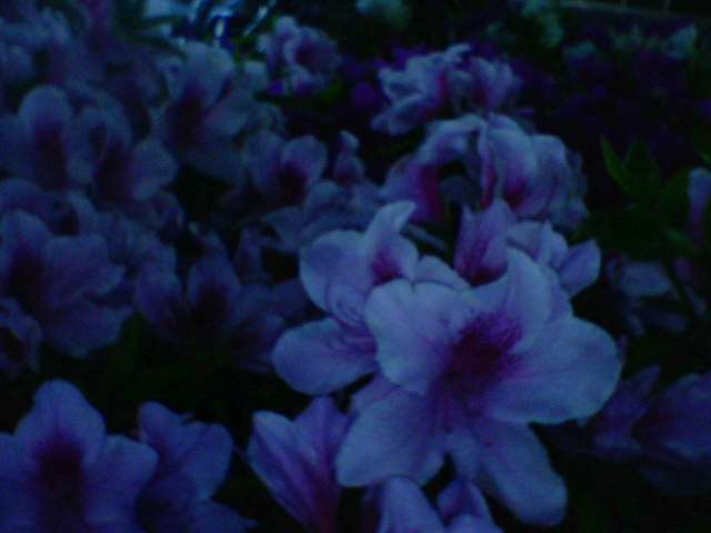 真っ暗な夜のなか鮮やかな存在感で咲き誇るツツジ