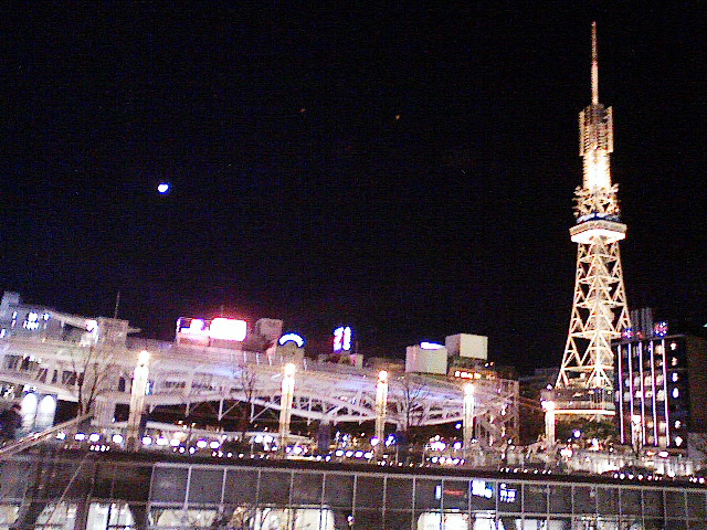 愛知県芸術ホールを背に街を。月もいっしょに。